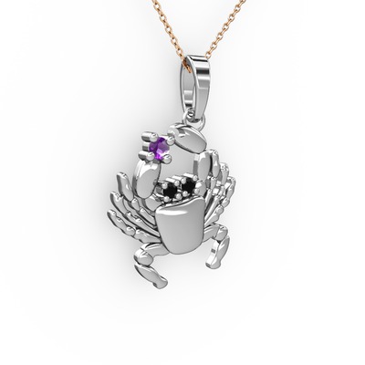 Ametist ve siyah zirkon 18 ayar beyaz altın kolye (40 cm rose altın rolo zincir)