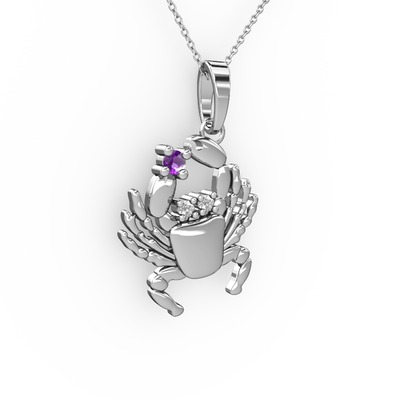 Ametist ve swarovski 14 ayar beyaz altın kolye (40 cm beyaz altın rolo zincir)
