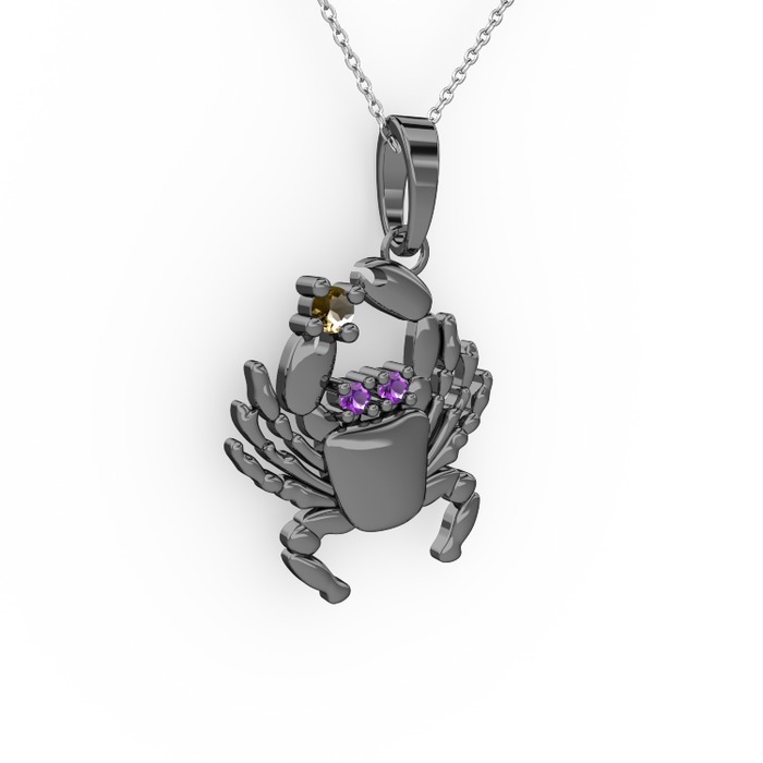 Dumanlı kuvars ve ametist 925 ayar siyah rodyum kaplama gümüş kolye (40 cm gümüş rolo zincir)