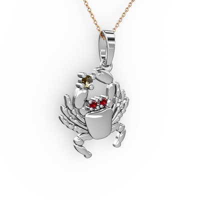 Dumanlı kuvars ve garnet 8 ayar beyaz altın kolye (40 cm gümüş rolo zincir)