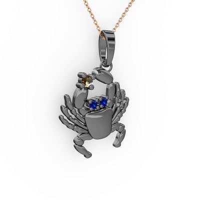 Dumanlı kuvars ve lab safir 925 ayar siyah rodyum kaplama gümüş kolye (40 cm rose altın rolo zincir)