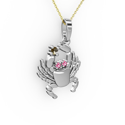 Dumanlı kuvars ve pembe kuvars 18 ayar beyaz altın kolye (40 cm gümüş rolo zincir)