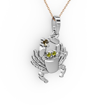 Dumanlı kuvars ve peridot 14 ayar beyaz altın kolye (40 cm rose altın rolo zincir)