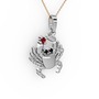 Garnet ve siyah zirkon 8 ayar beyaz altın kolye (40 cm rose altın rolo zincir)