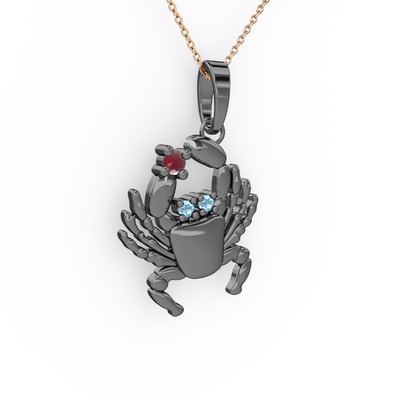 Kök yakut ve akuamarin 925 ayar siyah rodyum kaplama gümüş kolye (40 cm rose altın rolo zincir)