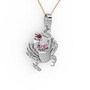 Kök yakut ve pembe kuvars 14 ayar beyaz altın kolye (40 cm rose altın rolo zincir)
