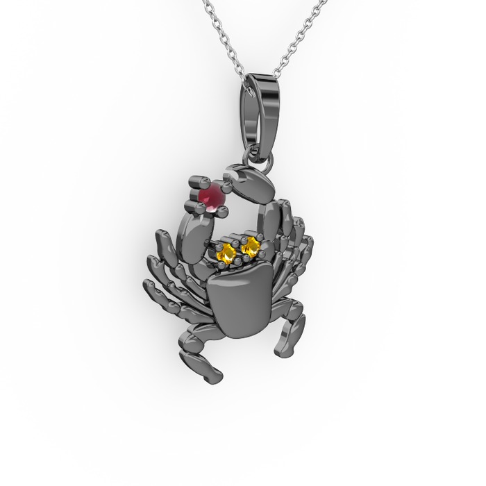 Kök yakut ve sitrin 925 ayar siyah rodyum kaplama gümüş kolye (40 cm gümüş rolo zincir)