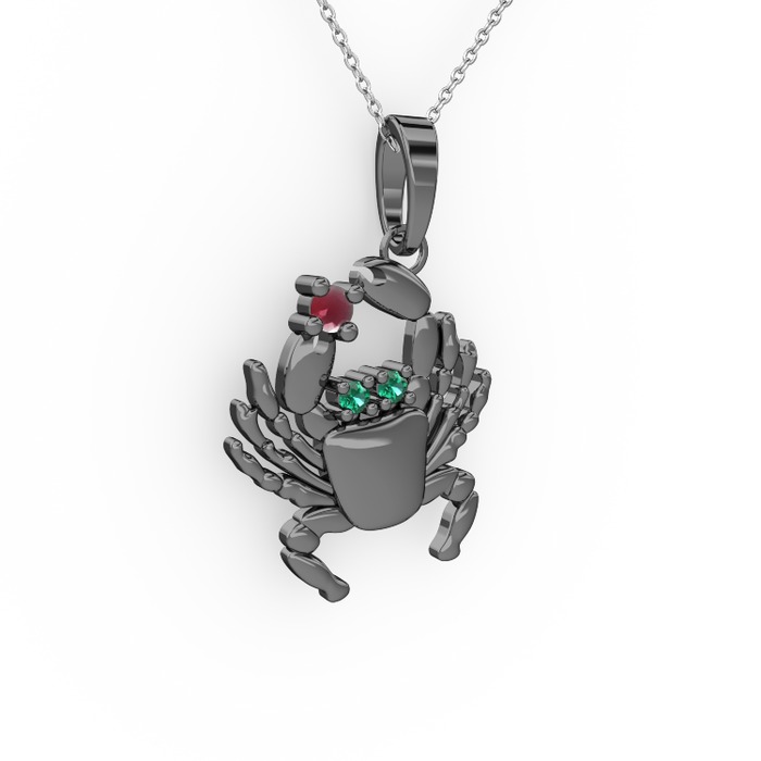 Kök yakut ve yeşil kuvars 925 ayar siyah rodyum kaplama gümüş kolye (40 cm gümüş rolo zincir)
