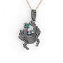 Kök zümrüt ve akuamarin 925 ayar siyah rodyum kaplama gümüş kolye (40 cm rose altın rolo zincir)