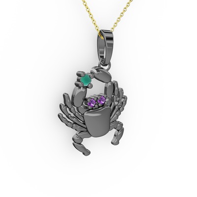 Kök zümrüt ve ametist 925 ayar siyah rodyum kaplama gümüş kolye (40 cm gümüş rolo zincir)