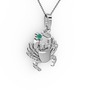 Kök zümrüt ve beyaz zirkon 14 ayar beyaz altın kolye (40 cm gümüş rolo zincir)