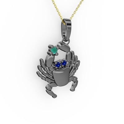 Kök zümrüt ve lab safir 925 ayar siyah rodyum kaplama gümüş kolye (40 cm altın rolo zincir)