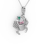 Kök zümrüt ve pembe kuvars 8 ayar beyaz altın kolye (40 cm beyaz altın rolo zincir)