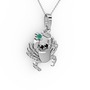 Kök zümrüt ve siyah zirkon 8 ayar beyaz altın kolye (40 cm beyaz altın rolo zincir)