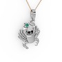 Kök zümrüt ve siyah zirkon 8 ayar beyaz altın kolye (40 cm rose altın rolo zincir)