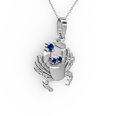 Lab safir 18 ayar beyaz altın kolye (40 cm gümüş rolo zincir)