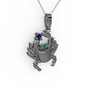 Lab safir ve yeşil kuvars 925 ayar siyah rodyum kaplama gümüş kolye (40 cm beyaz altın rolo zincir)
