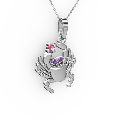 Yengeç Kolye - Pembe kuvars ve ametist 14 ayar beyaz altın kolye (40 cm beyaz altın rolo zincir)