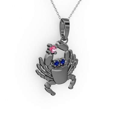 Pembe kuvars ve lab safir 925 ayar siyah rodyum kaplama gümüş kolye (40 cm beyaz altın rolo zincir)