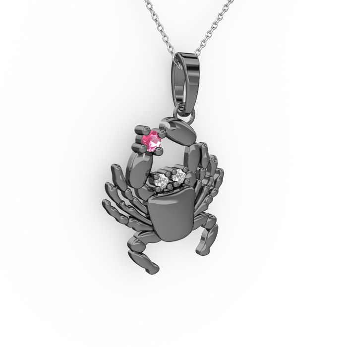 Pembe kuvars ve pırlanta 925 ayar siyah rodyum kaplama gümüş kolye (0.03 karat, 40 cm gümüş rolo zincir)