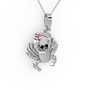 Pembe kuvars ve siyah zirkon 8 ayar beyaz altın kolye (40 cm beyaz altın rolo zincir)