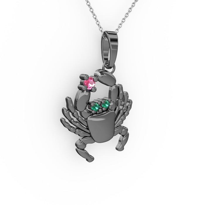 Pembe kuvars ve yeşil kuvars 925 ayar siyah rodyum kaplama gümüş kolye (40 cm gümüş rolo zincir)