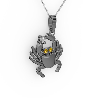 Pırlanta ve sitrin 925 ayar siyah rodyum kaplama gümüş kolye (0.06 karat, 40 cm gümüş rolo zincir)