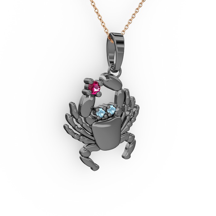 Rodolit garnet ve akuamarin 925 ayar siyah rodyum kaplama gümüş kolye (40 cm gümüş rolo zincir)