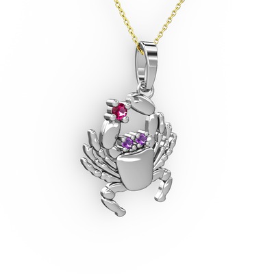 Rodolit garnet ve ametist 18 ayar beyaz altın kolye (40 cm gümüş rolo zincir)