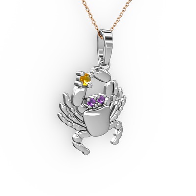 Sitrin ve ametist 18 ayar beyaz altın kolye (40 cm rose altın rolo zincir)