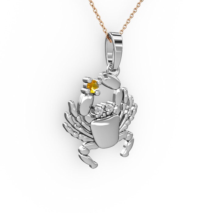 Sitrin ve beyaz zirkon 18 ayar beyaz altın kolye (40 cm rose altın rolo zincir)