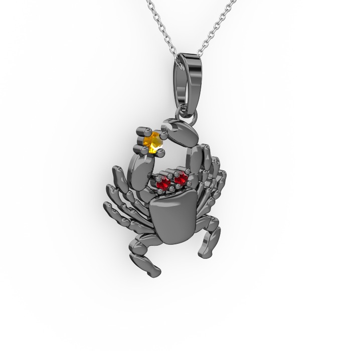 Sitrin ve garnet 925 ayar siyah rodyum kaplama gümüş kolye (40 cm beyaz altın rolo zincir)