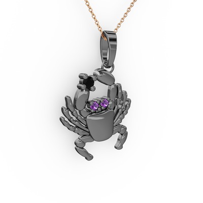 Siyah zirkon ve ametist 925 ayar siyah rodyum kaplama gümüş kolye (40 cm rose altın rolo zincir)