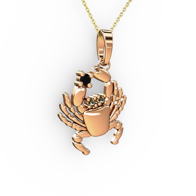 Siyah zirkon ve dumanlı kuvars 18 ayar rose altın kolye (40 cm altın rolo zincir)