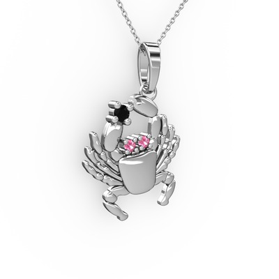 Siyah zirkon ve pembe kuvars 8 ayar beyaz altın kolye (40 cm beyaz altın rolo zincir)