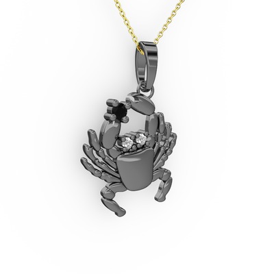 Siyah zirkon ve pırlanta 925 ayar siyah rodyum kaplama gümüş kolye (0.03 karat, 40 cm altın rolo zincir)