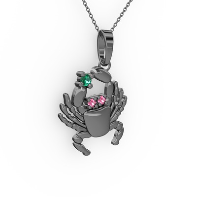 Yeşil kuvars ve pembe kuvars 925 ayar siyah rodyum kaplama gümüş kolye (40 cm gümüş rolo zincir)