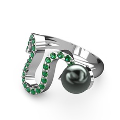 Lacivert akrilik ve yeşil kuvars 14 ayar beyaz altın yüzük