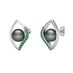 Yeşil kuvars 14 ayar beyaz altın küpe