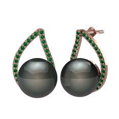 Siyah inci ve yeşil kuvars 14 ayar altın küpe