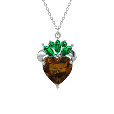 KENDİN TASARLADumanlı kuvars ve yeşil kuvars 18 ayar beyaz altın kolye (40 cm beyaz altın rolo zincir)