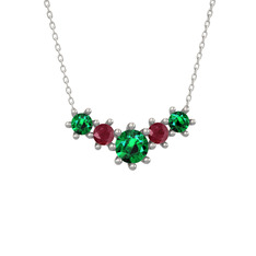 KENDİN TASARLAYeşil kuvars ve kök yakut 18 ayar beyaz altın kolye (40 cm beyaz altın rolo zincir)