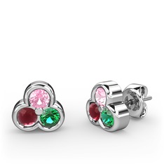 KENDİN TASARLAPembe kuvars, kök yakut ve yeşil kuvars 18 ayar beyaz altın küpe