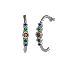 KENDİN TASARLALab safir, dumanlı kuvars ve yeşil kuvars 18 ayar beyaz altın küpe