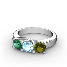 Yeşil kuvars, akuamarin ve peridot 18 ayar beyaz altın yüzük