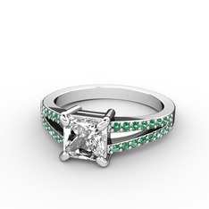 KENDİN TASARLABeyaz zirkon ve yeşil kuvars 18 ayar beyaz altın yüzük