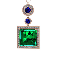 Lab safir ve yeşil kuvars 18 ayar rose altın kolye (40 cm beyaz altın rolo zincir)