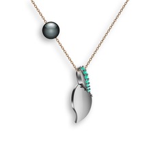 Yeşil kuvars 8 ayar rose altın kolye (40 cm beyaz altın rolo zincir)