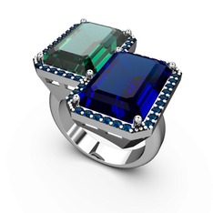 Lab safir ve yeşil kuvars 8 ayar beyaz altın yüzük