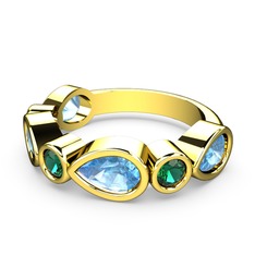 Akuamarin ve yeşil kuvars 18 ayar altın yüzük